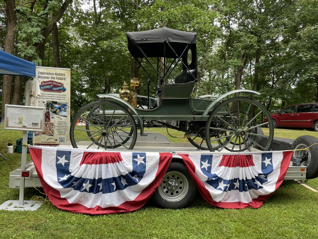 On a slightly different subject, reminding us of the event’s history, the Boyertown Museum of Historic Vehicles brought a beautifully restored 1907 Duryea Buggyaut to display at the event  on Saturday.   The car was built in Reading, PA, and had a two cylinder, 12 Horsepower air cooled engine.